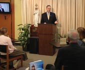 Nearly thirty people attended the signing at the small shop which is actually located in the nearby suburb of St. Charles. St. Joe’s Java and adjoining bookstore is a special apostolate of Lu Cortese who often holds Catholic events at this location. Her main operation however, is St. Joseph’s Radio. Behind the coffee shop, there is an extensive recording studio that produces quality Catholic programming for radio and television. Her film crew was on hand to film the presentation of the book by its author.