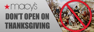 If you believe that Thanksgiving is to thank God for what we have, not to buy more things you don’t have or need, then please send Macy’s this urgent petition message: